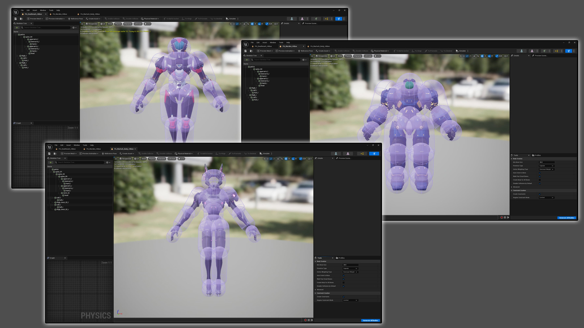 Keeping the capsules up to date with the frequent model changes, maintaining a well balanced experience between the capsules sizes character proportions and overall high speed combat pacing. An the same time, the anti-cheat measures imposed some limitations on certain aspects of the system.