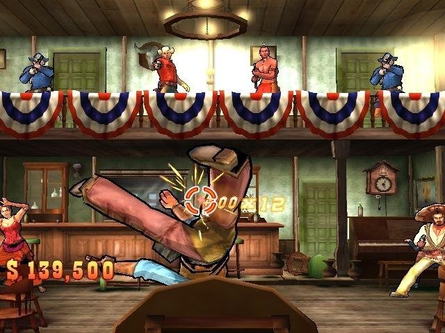 • The primary objective is to eliminate hostile targets (cowboys, Indians, and Mexicans) while avoiding friendly characters (bartender, civilians).