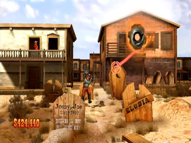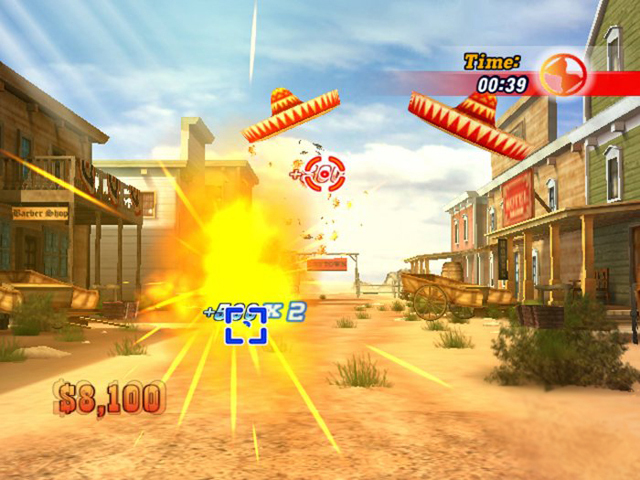 • Players are rewarded with bonus points for consecutive hits, as well as for shooting interactive or incidental objects in the scene (e.g. carts, signs, crows, and rats).